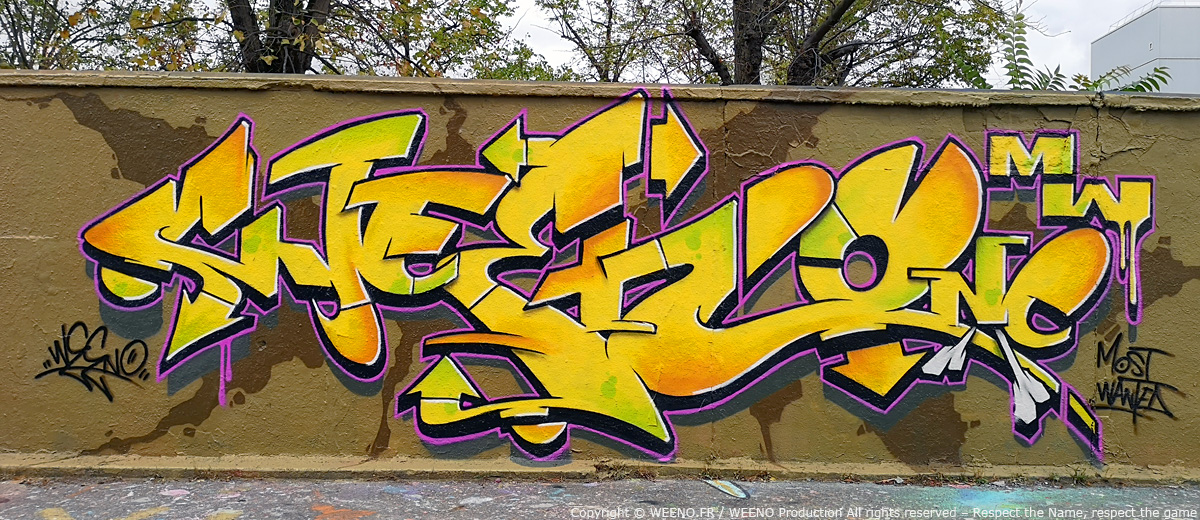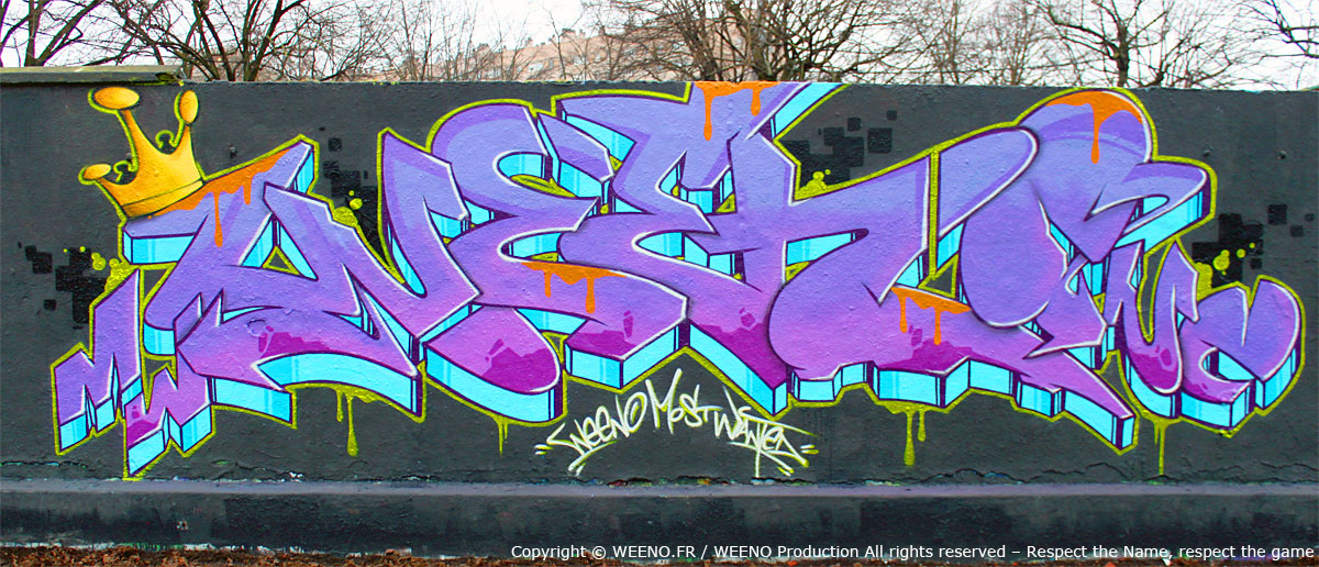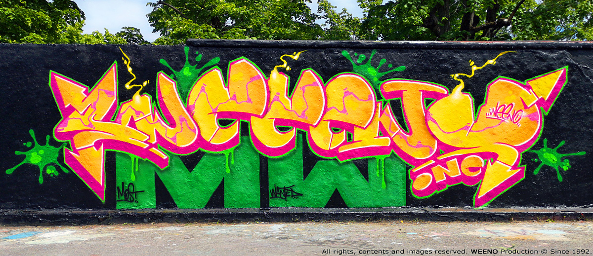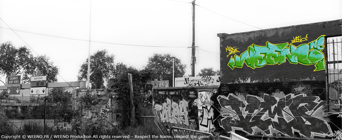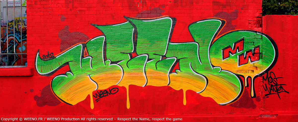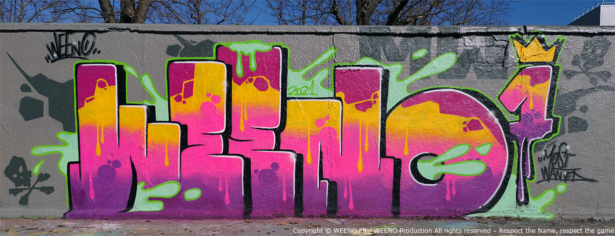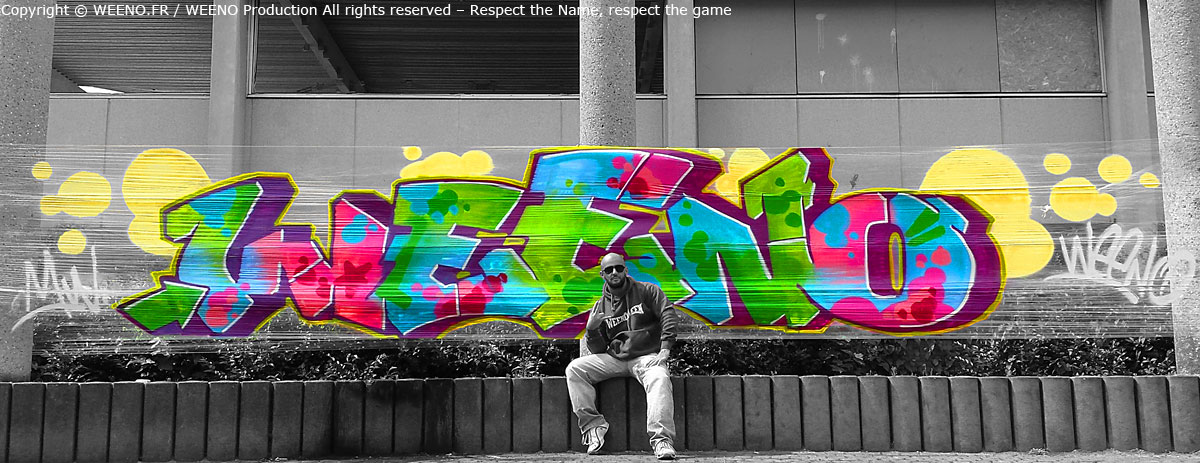 WEENO, originaire du 92 (Hauts‑de‑Seine) en France, se lance dans le graffiti dès le début des années 90, nourri par l’énergie brute du street‑art américain des années 70 et par les classiques de Spraycan Art.